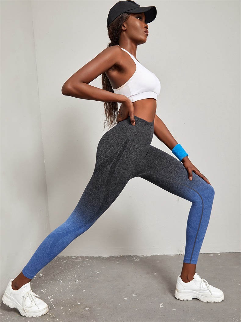 Tie-dye gradual change yoga pants seamless sports trousers women's outer wear anti-light quick-drying tight belly pants hip shaping