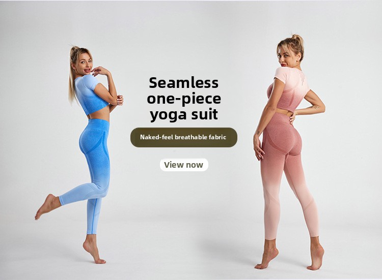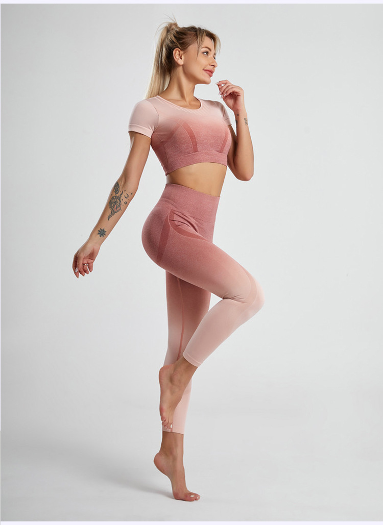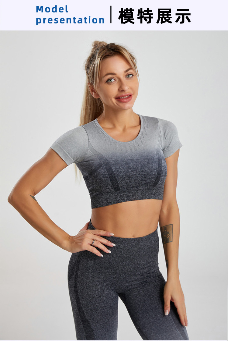 Yoga Clothing Shock-proof Sports Short-sleeved High-waisted Summer Yoga Clothing Suit Women's Summer Sports Suit Women's European and American