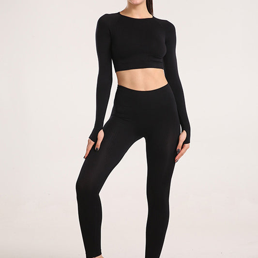 Europe and The United States Popular Sports Yoga Suit Women's Seamless Sportswear Suit Women's Two-piece Set Long-sleeved Sports Suit Summer