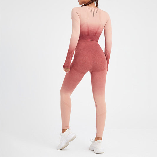 New European and American Spot Hot-selling Seamless Peach Hip Gradual Change Color Sports Suit Long Sleeve Yoga Suit Fitness Clothes Women