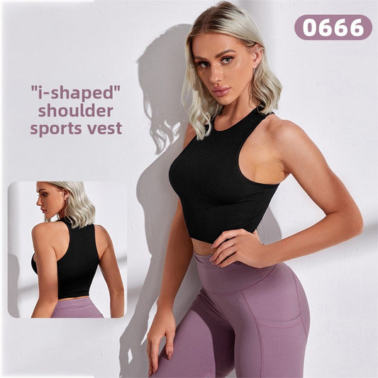 Summer Yoga Fitness Vest with Chest Pad Sports Vest Shock-proof Women's High-strength Outer Wear I-shaped Underwear