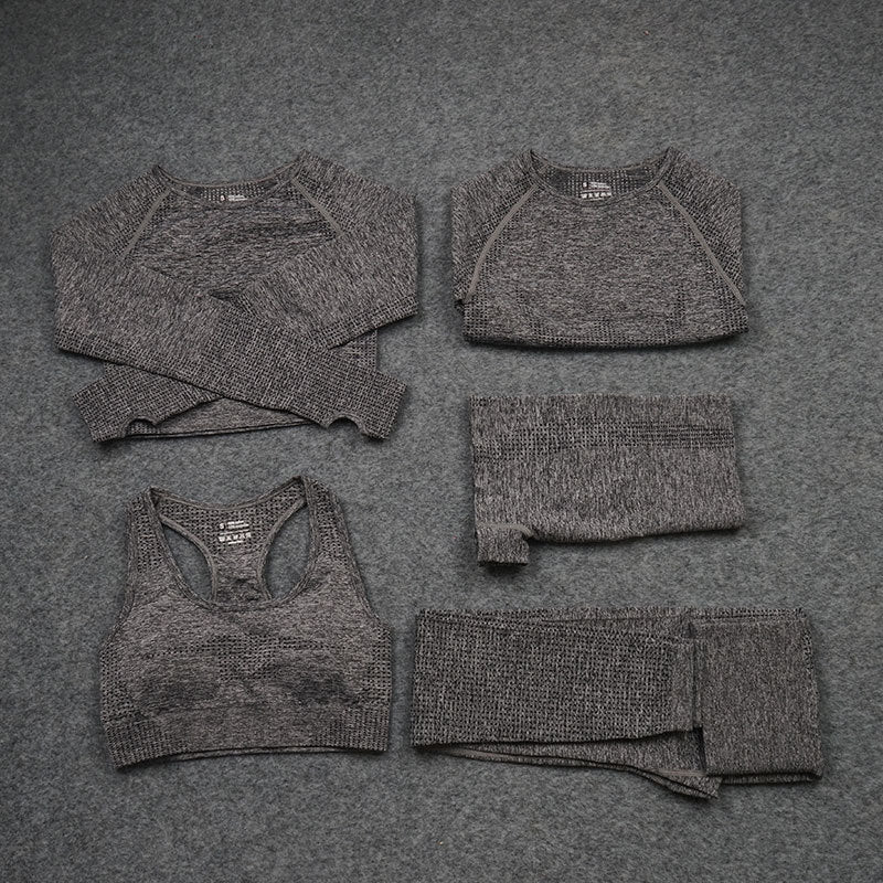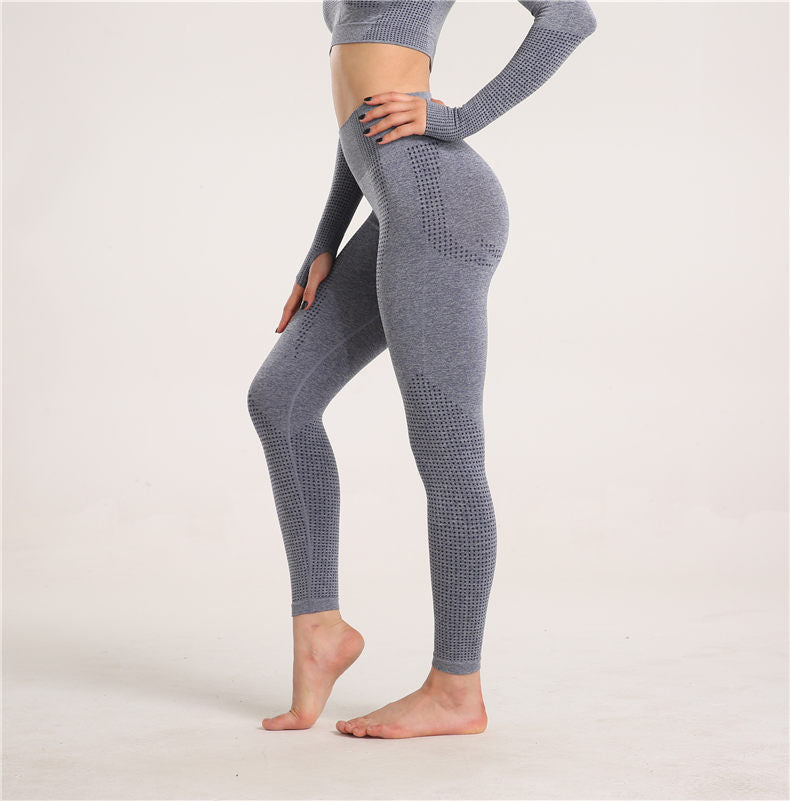 Explosive Yoga Suit Seamless High-waisted Running Hip Pants Suit Quick-drying Long-sleeved Sportswear Women's Suit