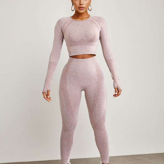 Popular Yoga Suit Set Long Sleeves Trousers Tight Nude Yoga Suit